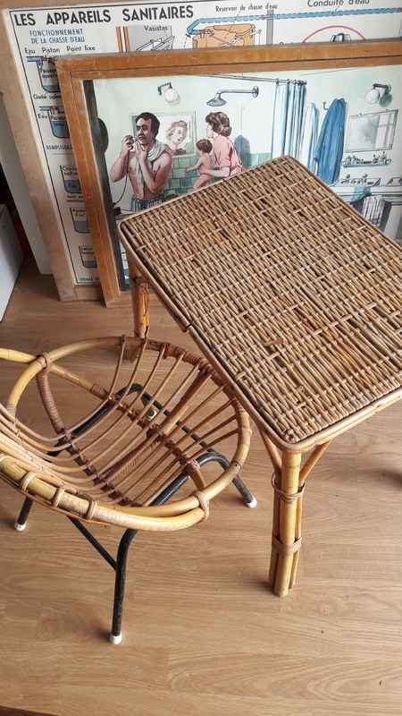 Petite table en rotin et son siège