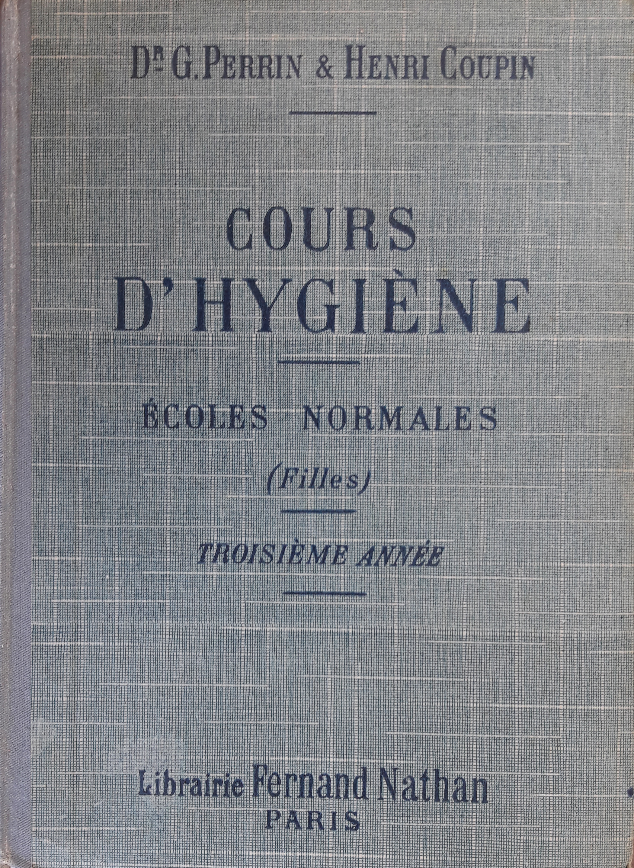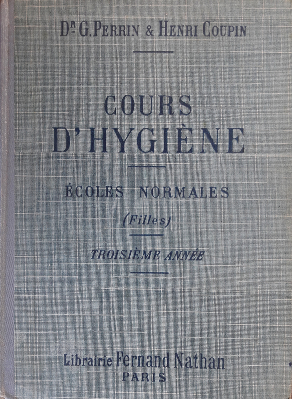 PERRIN (G.), docteur ès sciences, docteur en médecine, ancien élève de l'ENS de Saint-Cloud, professeur à l'EN de Clermont-Ferrand, COUPIN (H.), docteur ès sciences, lauréat de l'institut, chef de travaux d'histoire naturelle à l'université de Paris, “Cours d'hygiène, écoles normales, filles, troisième année,” Maison Historique de l'Ecole dans la Manche, consulté le 29 avril 2026, https://rs-genea.com/omeka/items/show/1032.