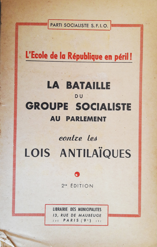 Parti socialiste, SFIO, COMMIN (Pierre), MOLLET (Guy), secrétaire général du Parti socialiste, “L'école de la République en péril ! La bataille du groupe socialiste au Parlement contre les lois antilaïques.,” Maison Historique de l'Ecole dans la Manche, consulté le 28 avril 2026, https://rs-genea.com/omeka/items/show/1110.