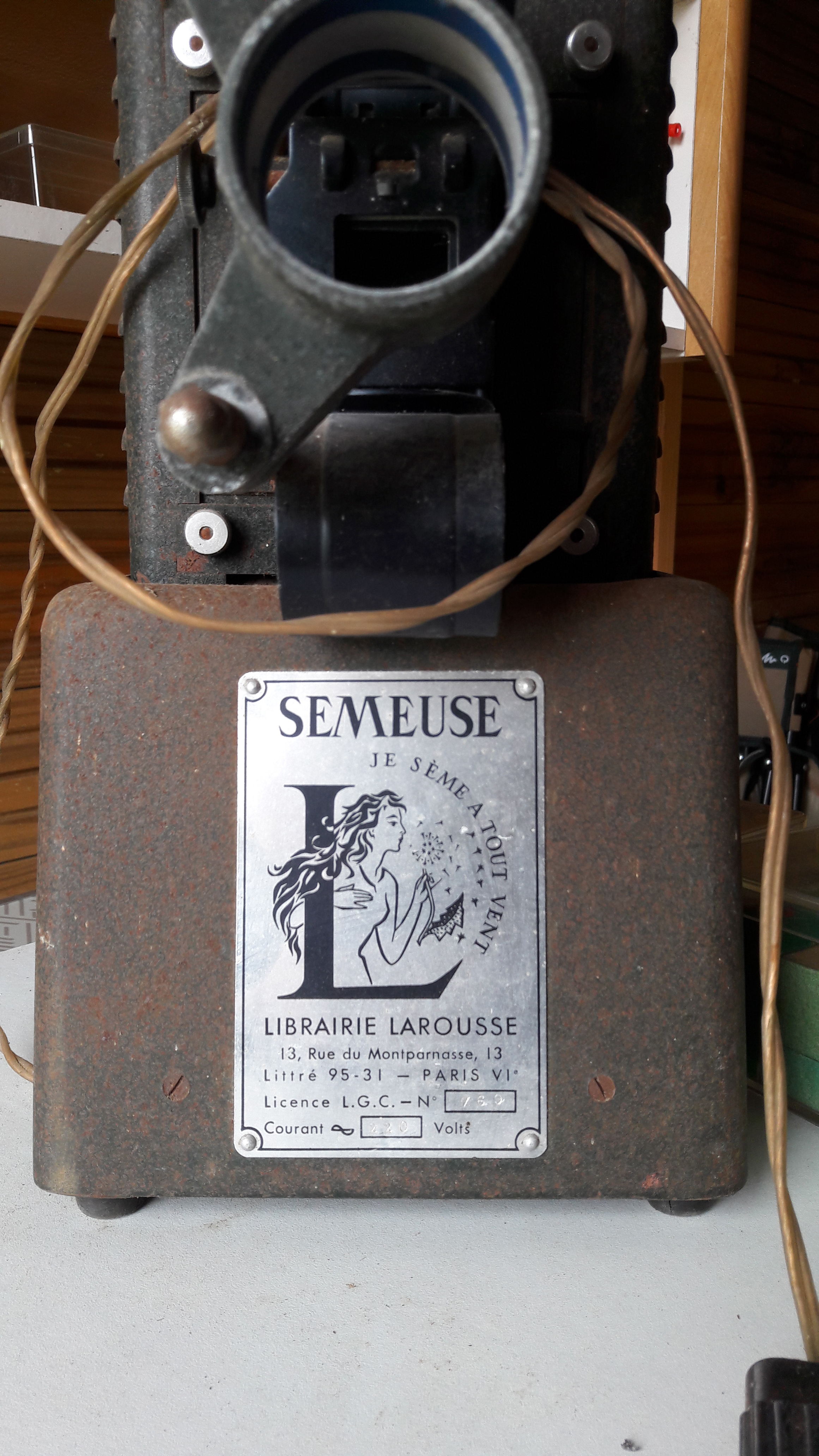 Librairie Larousse, “Projecteur "Semeuse" diffusé par Larousse,” Maison Historique de l'Ecole dans la Manche, consulté le 28 avril 2026, https://rs-genea.com/omeka/items/show/1197.