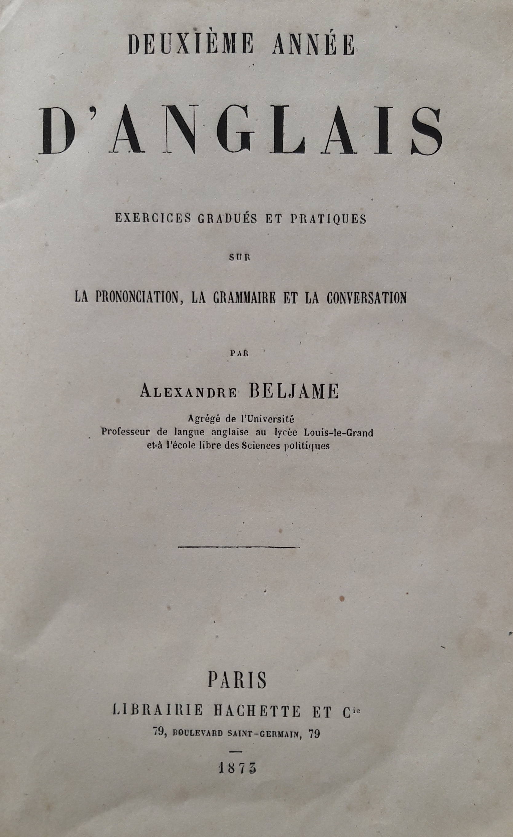 BELJAME (Alexandre), agrégé de l'université, professeur de langue anglaise au lycée Louis-le-Grand et à l'école libre des sciences politiques, “Deuxième année d'anglais. Exercices gradués et pratiques sur la prononciation, la grammaire et la conversation,” Maison Historique de l'Ecole dans la Manche, consulté le 29 avril 2026, https://rs-genea.com/omeka/items/show/1214.