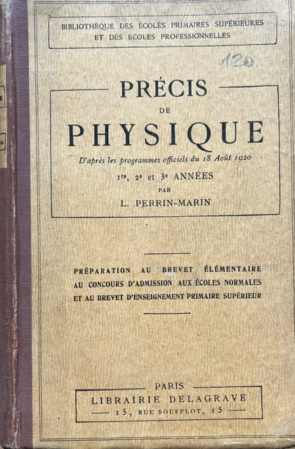 PERRIN-MARTIN (L.), “Précis de physique,” Maison Historique de l'Ecole dans la Manche, consulté le 28 avril 2026, https://rs-genea.com/omeka/items/show/122.