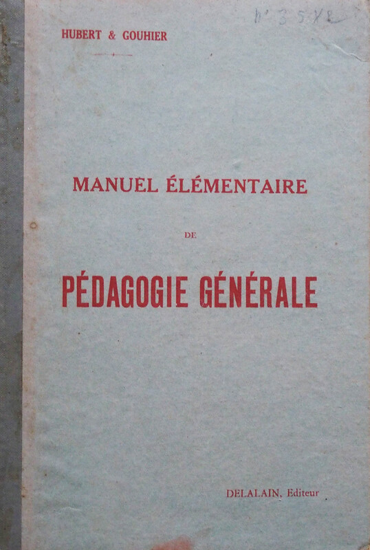HUBERT (René), ancien éléève de l'école normale supérieure, doyen de la facultés des Lettres de Lille, GOUHIER (Henri), ancien éléève de l'école normalke supérieure, professeur à la faculté des Lettres de Lille., “Manuel élémentaire de pédagigie générale. Programme des écoles normales primaires. Certificat libre de pédagogie.,” Maison Historique de l'Ecole dans la Manche, consulté le 28 avril 2026, https://rs-genea.com/omeka/items/show/1420.