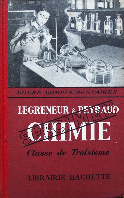LEGRENEUR (G.), ancien élèves de l'ENS de Saint-Cloud, professeur au collège moderne de Nogent-sur-Marne, PEYRAUD (M.), professeur au collège moderne de Nogent-sur-Marne., “Chimie, classe de troisième des cours complémentaires,” Maison Historique de l'Ecole dans la Manche, consulté le 28 avril 2026, https://rs-genea.com/omeka/items/show/1422.