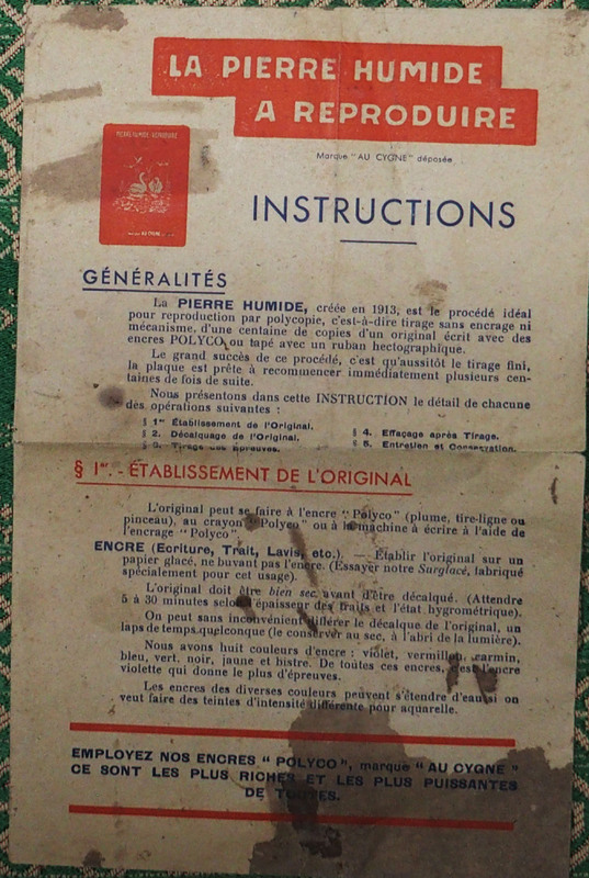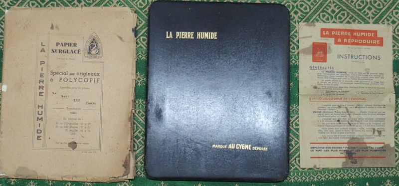 Pierre sèche dans son emballage métal, notice d'emploi, papier de duplication.