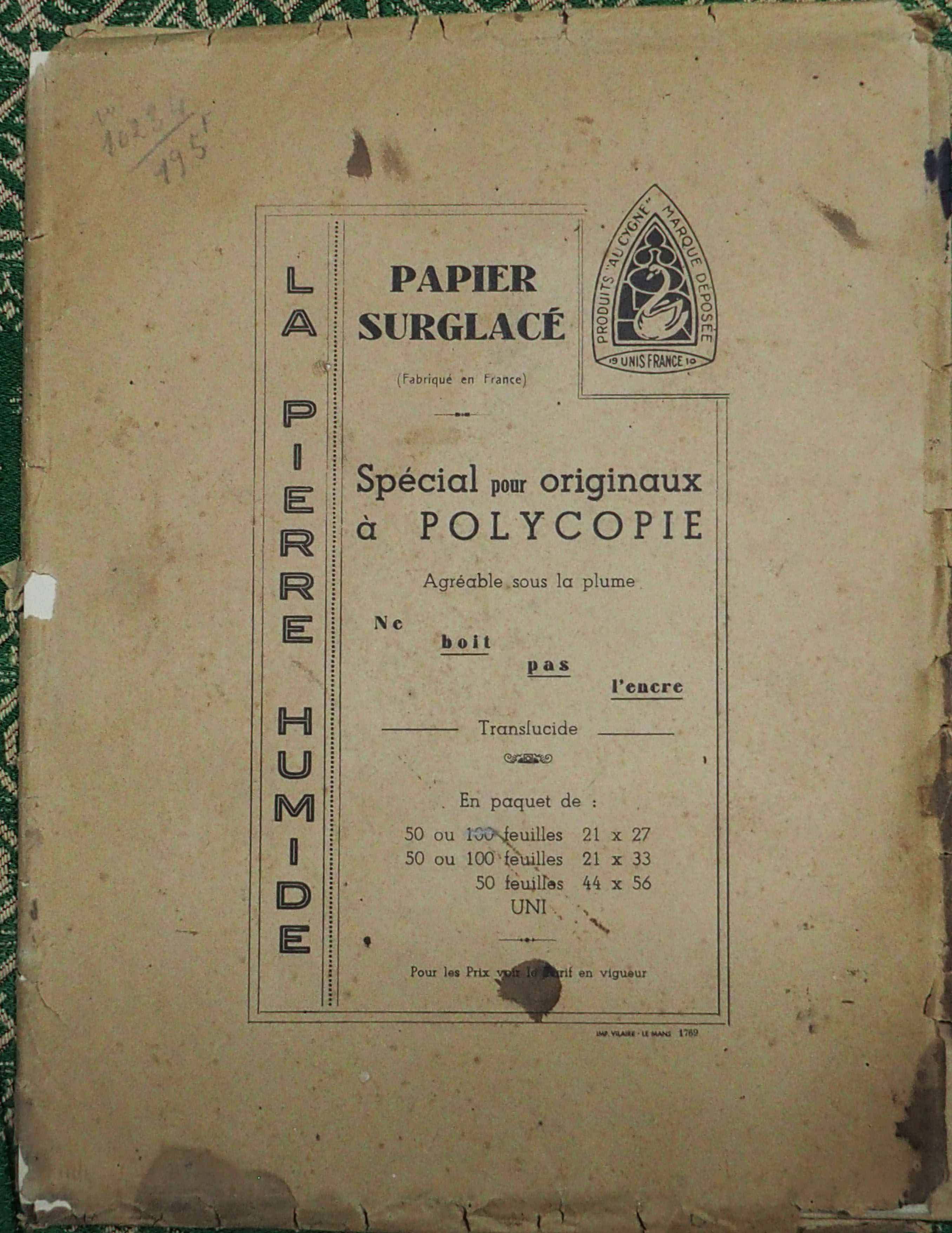 Pierre humide, marque "Au cygne"