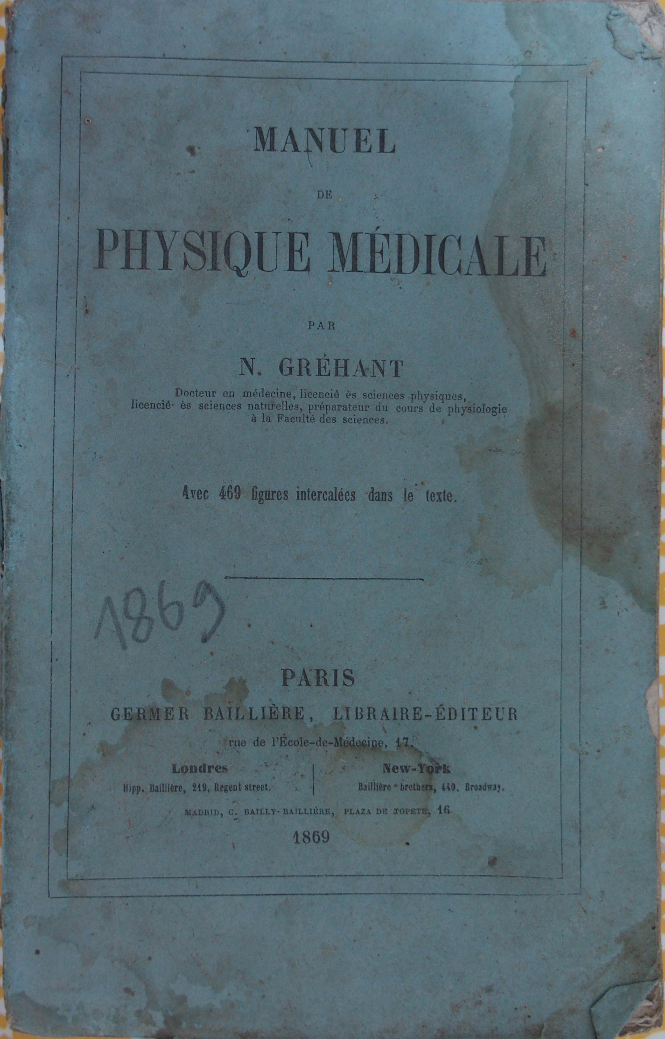 GREHANT (N.), docteur en médecine, licencié ès sciences physiques, licencié ès sciences naturelles, préparateur du cours de physiologie à la faculté des sciences., “Manuel de physique médicale avec 469 figures intercalées dans le texte,” Maison Historique de l'Ecole dans la Manche, consulté le 29 avril 2026, https://rs-genea.com/omeka/items/show/1860.