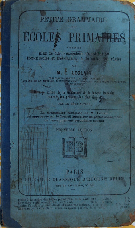 LECLAIR ( M.C.), professeur agrégé de l'université auteur de la méthode d'enseignement unique des langues anciennes et modernes, “Petite grammaire des écoles primaires contenant plus de 4 500 exercices d'application très simples et très faciles à la suite de la règle.,” Maison Historique de l'Ecole dans la Manche, consulté le 29 avril 2026, https://rs-genea.com/omeka/items/show/1869.
