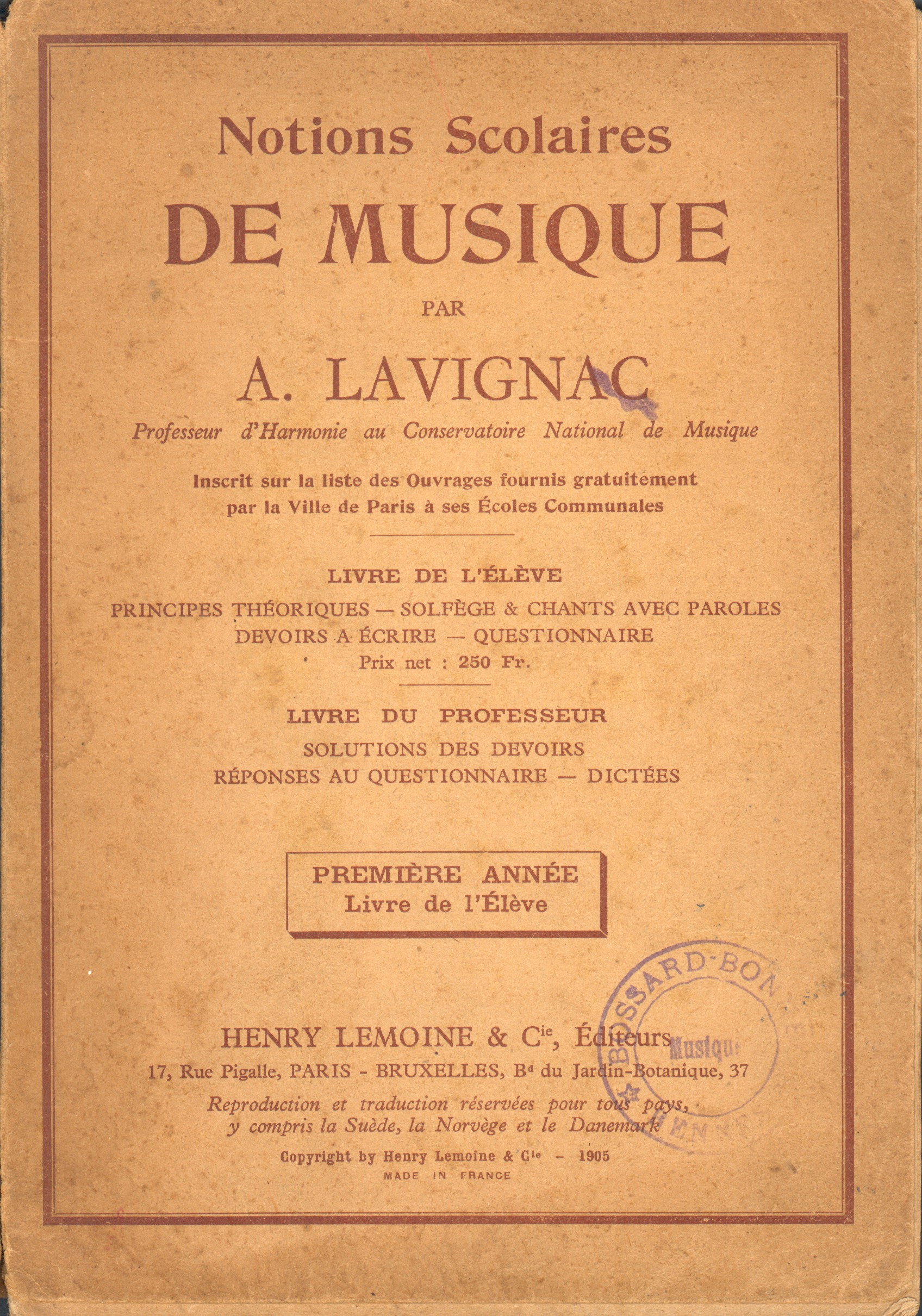 LAVIGNAC (A.), “Notions scolaires de musique,” Maison Historique de l'Ecole dans la Manche, consulté le 28 avril 2026, https://rs-genea.com/omeka/items/show/1998.