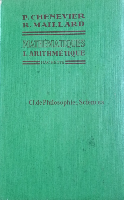 MAILLARD (Roland), ancien élève de l'Ecole normale supérieure, professeur de mathématiques spéciales au lycée de Versailles. CHENEVIER (Pierre), “Mathématiques. I- Arithmétique. Cours Pierre Chenevier,” Maison Historique de l'Ecole dans la Manche, consulté le 28 avril 2026, https://rs-genea.com/omeka/items/show/2076.