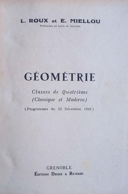 ROUX (L.), MIELLOU (E.), professeurs au lycée de Grenoble, “Géométrie, classes de quatrième,” Maison Historique de l'Ecole dans la Manche, consulté le 29 avril 2026, https://rs-genea.com/omeka/items/show/2079.
