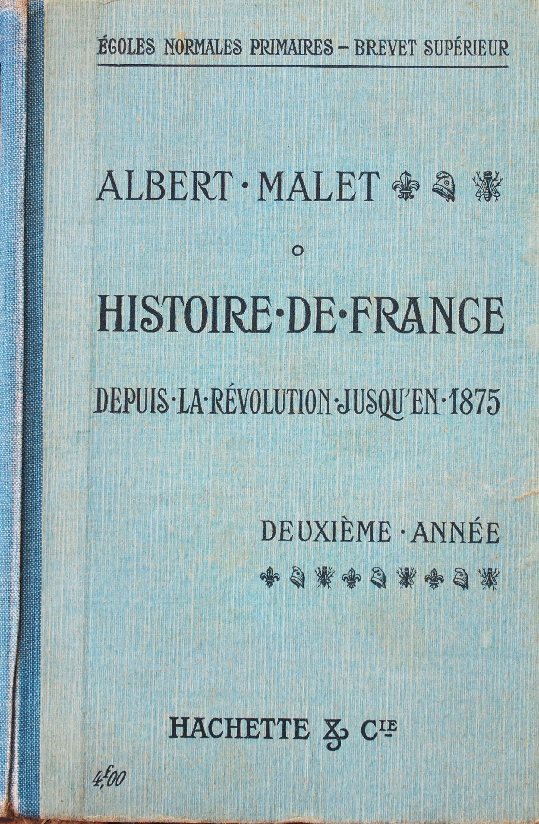MALET (Albert), professeur agrégé d'histoire au lycée Louis-le-Grand., “Histoire de France. Notions sommaires d'histoire générale depuis la Révolution jusqu'en 1975. Ecoles normales primaires et brevet supérieur,” Maison Historique de l'Ecole dans la Manche, consulté le 28 avril 2026, https://rs-genea.com/omeka/items/show/2129.