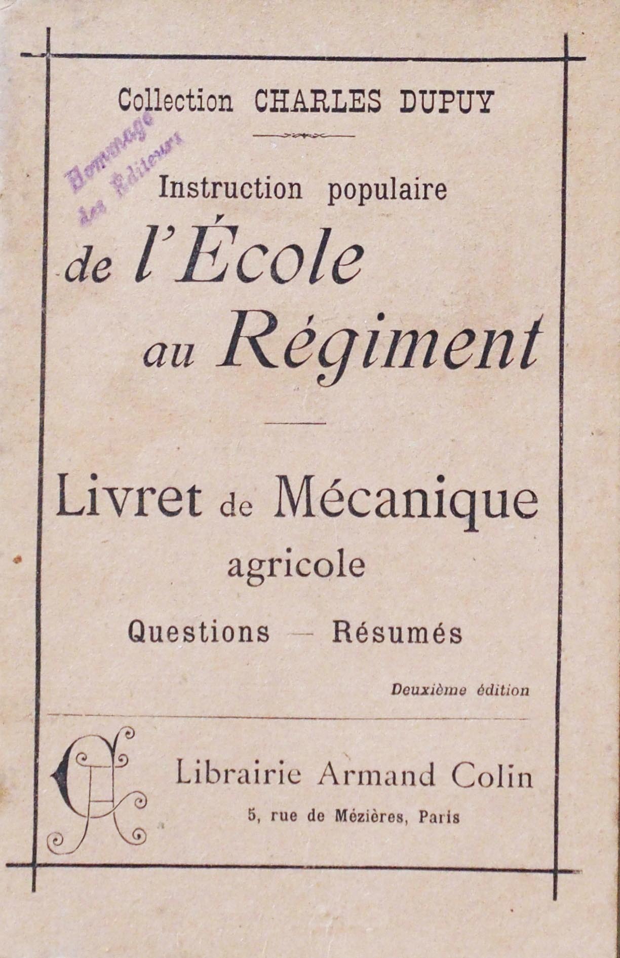 Zolla, Daniel, “Instruction populaire de l'Ecole au Régiment : Livret de mécanique agricole,” Maison Historique de l'Ecole dans la Manche, consulté le 29 avril 2026, https://rs-genea.com/omeka/items/show/258.