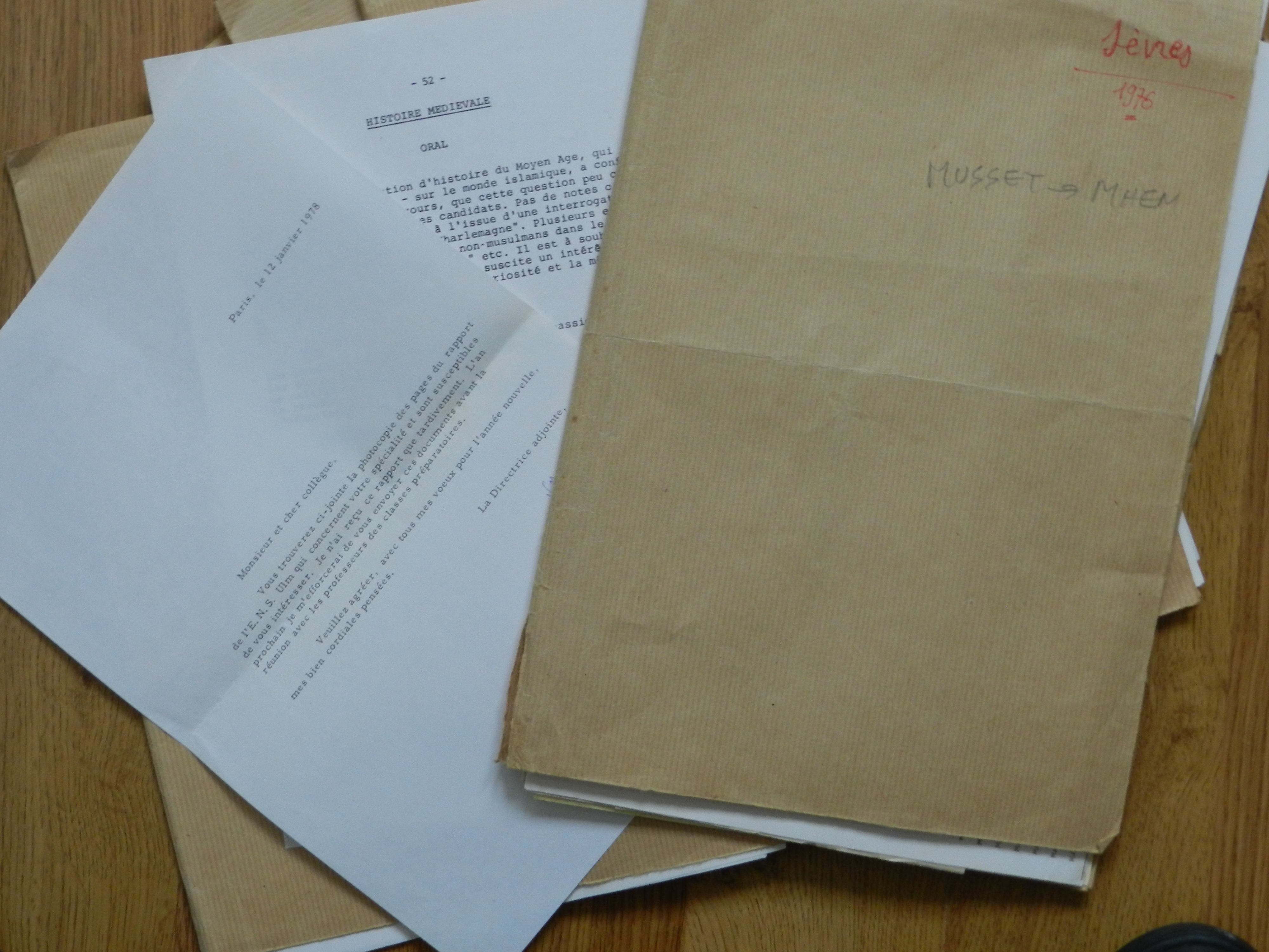 Dossiers jury histoire/géographie, ENS de Sèvres, de 1976 à 1981. Professeur Musset.