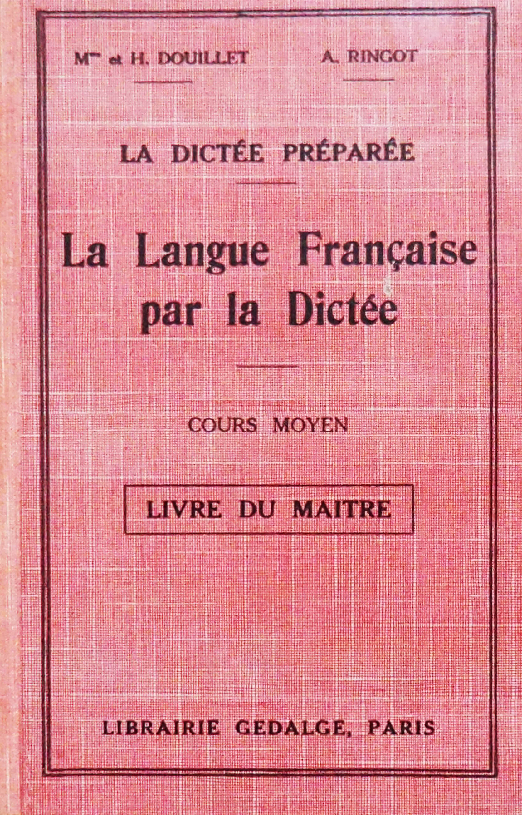 DOUILLET (H.), instituteur, Chevalier de la Légion d'honneur, RINGOT (A.), agrégé de gtrammaire,,provisuer de lycée, DOUILLET (Mme), ancienne élève de l'Ecole normale supérieure de Sèvres, directrice de collège de jeunes filles. , “La dictée préparée. La langue française par la dictée. Livre du maître - cours moyen, 8e, 7e.,” Maison Historique de l'Ecole dans la Manche, consulté le 28 avril 2026, https://rs-genea.com/omeka/items/show/275.