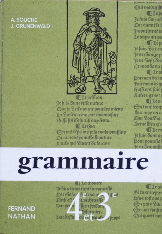 SOUCHE (A.), inspecteur de l'enseignement primaire, GRUNENWALD (J.), agrégé de l'université, MOREL (Nina), illustrations, “Grammaire française. Leçons et exercices. Cycle d'orientation, classes de quatrième et troisième.,” Maison Historique de l'Ecole dans la Manche, consulté le 29 avril 2026, https://rs-genea.com/omeka/items/show/2981.