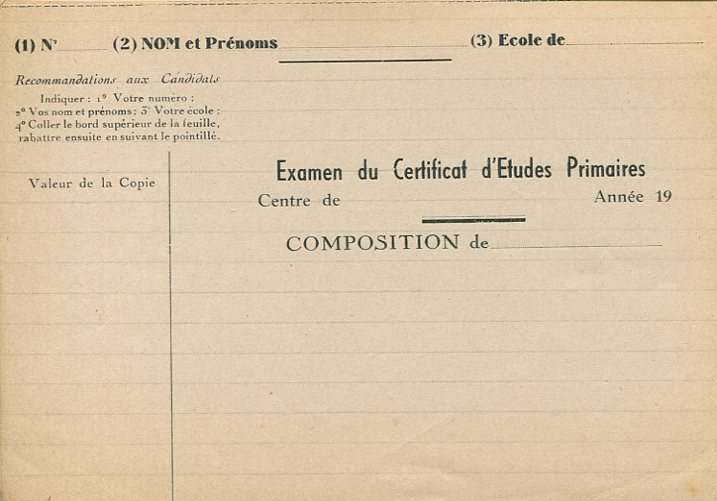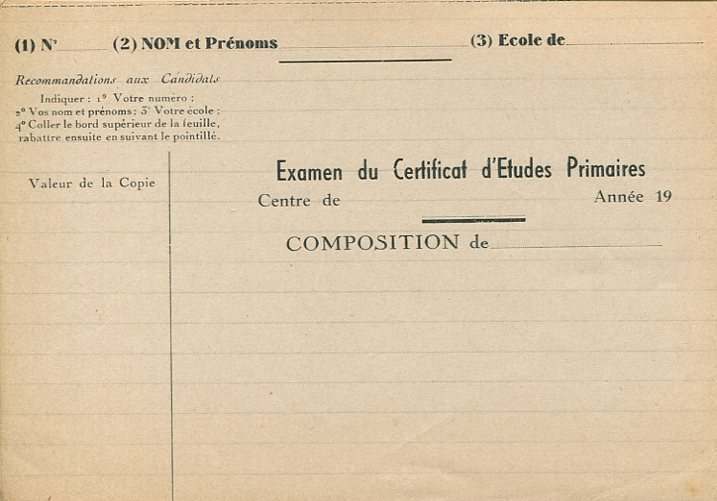 certificat d'études primaires, CEP, examen, copies