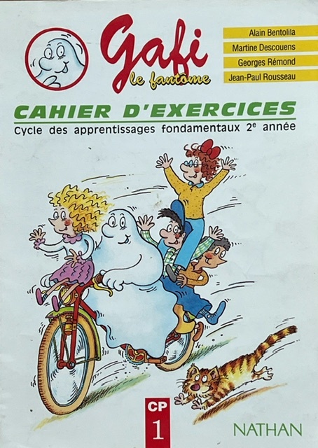 BENTOLILA (Alain), professeur à Paris V, REMOND (Georges), IEN, DESCOUENS (Martine), institutrice, ROUSSEAU (Jean-Paul), Directeur d'école d'application, LAMBLIN (Christian), MEREL, illustrations, “Gafi le fantôme. Méthode de lecture. Cycle des apprentisdsages fondamentaux, 2e année, cahier d'exercices,” Maison Historique de l'Ecole dans la Manche, consulté le 29 avril 2026, https://rs-genea.com/omeka/items/show/3293.