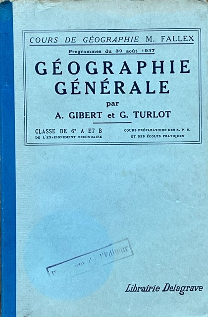 GIBERT (A.), docteur ès lettres, professeur de géographie à l'université de Lyon, TURLOT (G.),professeur agrégé d'histoire et de géographie au lycée Lakanal,, “Cours de géographie M. FALLEX.