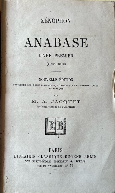 JACQUET (M. A.), professeur agrégé de l'Université, XENOPHON, “Anabase, Xénophon, livre premier (texte grec),” Maison Historique de l'Ecole dans la Manche, consulté le 28 avril 2026, https://rs-genea.com/omeka/items/show/3306.