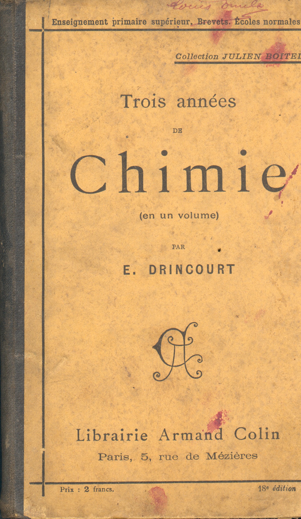 DRINCOURT E, “Trois années de chimie,” Maison Historique de l'Ecole dans la Manche, consulté le 28 avril 2026, https://rs-genea.com/omeka/items/show/3347.