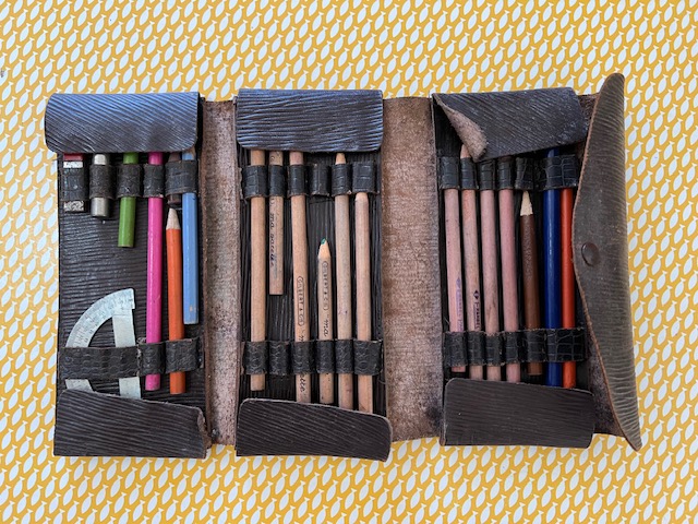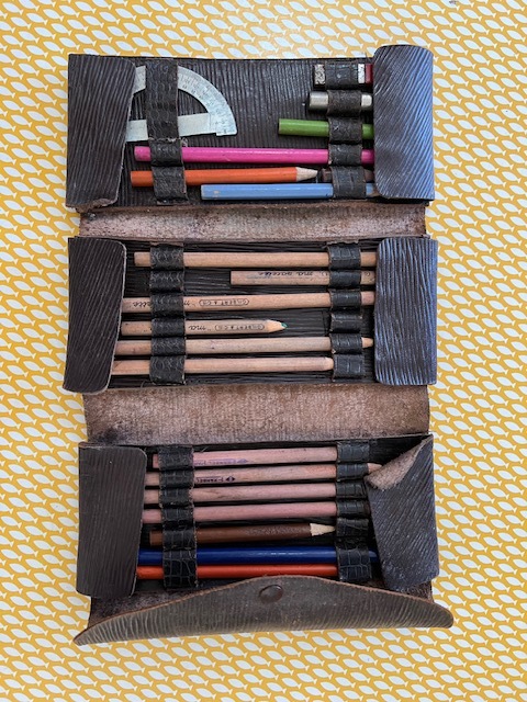 trousse d'écolier garnie de crayons de couleur "Gilbert" avec rapporteur métallique et porte-mines