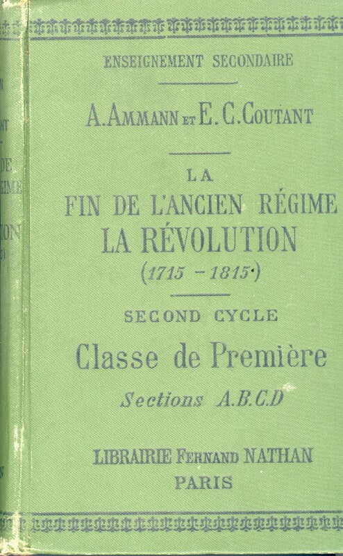 La fin de l'ancien régime et la révolution en classe de première selon les programmes de l1902.