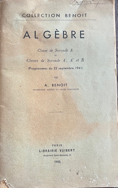 BENOIT (A.), professeur agrégé au lycée Condorcet, “Collection Benoit. Algèbre classe de seconde,” Maison Historique de l'Ecole dans la Manche, consulté le 28 avril 2026, https://rs-genea.com/omeka/items/show/3494.