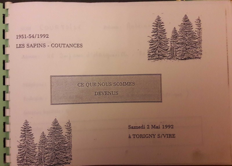 Plaquette de fiches des anciennes élèves des Sapins réunies à Torigny-sur-Vire le samedi 2 mai 1992