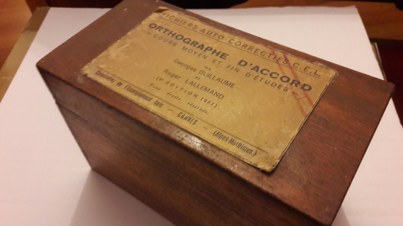 Boîte en bois contenant des fiches cartonnées