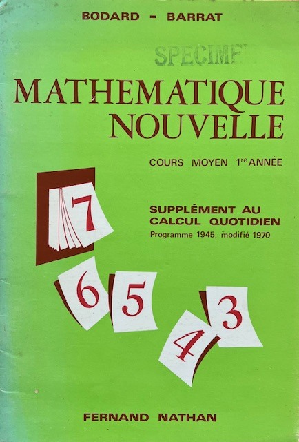BODART, BARRAT, “Mathématique nouvelle. Cours moyen 1ère année. Supplménet au calcul quotidien,” Maison Historique de l'Ecole dans la Manche, consulté le 28 avril 2026, https://rs-genea.com/omeka/items/show/3873.