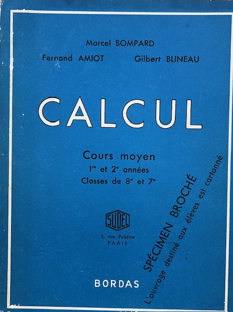 BOMPARD (Marcel), professeur à l'Ecole normale d'instituteurs de Paris, AMIOT (Fernand), BLINEAU (Gilbert), instituteurs, POLJEAN, illustrations, “Calcul. Cours moyen,” Maison Historique de l'Ecole dans la Manche, consulté le 28 avril 2026, https://rs-genea.com/omeka/items/show/3876.