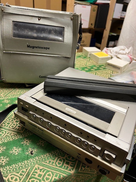 “magnétoscopte enregistreur portatif à pile et son étui de transport,” Maison Historique de l'Ecole dans la Manche, consulté le 28 avril 2026, https://rs-genea.com/omeka/items/show/4023.