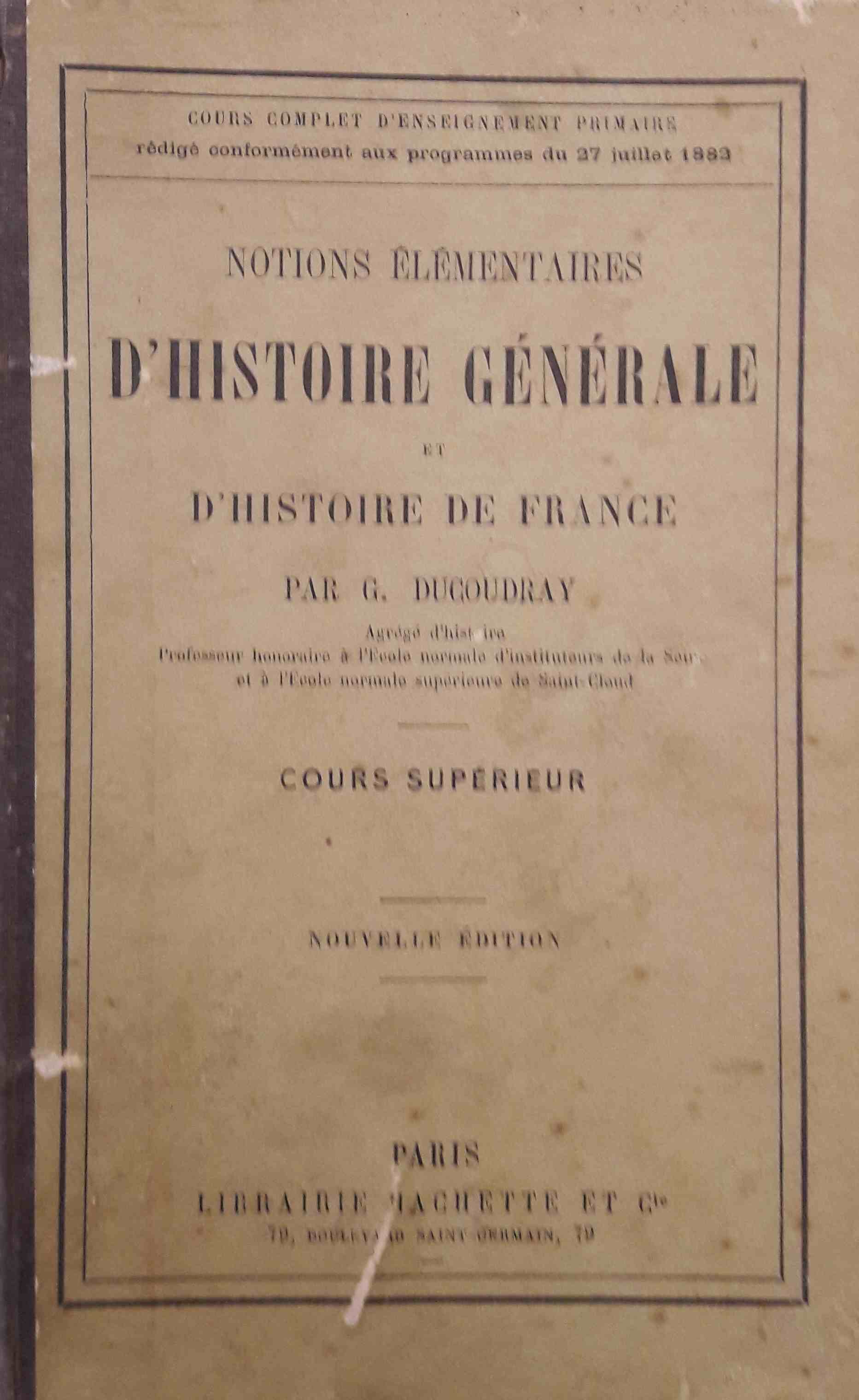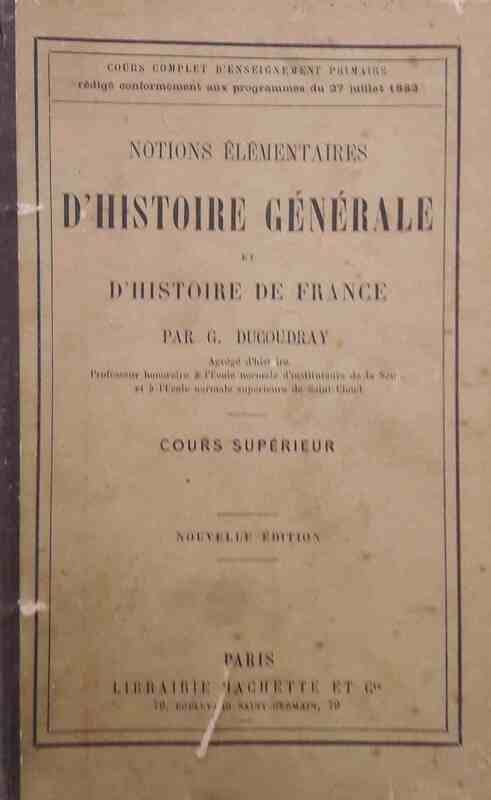 DUCOUDRAY (G.) agrégé d'histoire, professeur à l'école normale d'instituteurs de la Seine et de l'école normale supérieures de Saint-Cloud, “Notions élémentaires d'histoire générale et d'histoire de France,” Maison Historique de l'Ecole dans la Manche, consulté le 29 avril 2026, https://rs-genea.com/omeka/items/show/474.