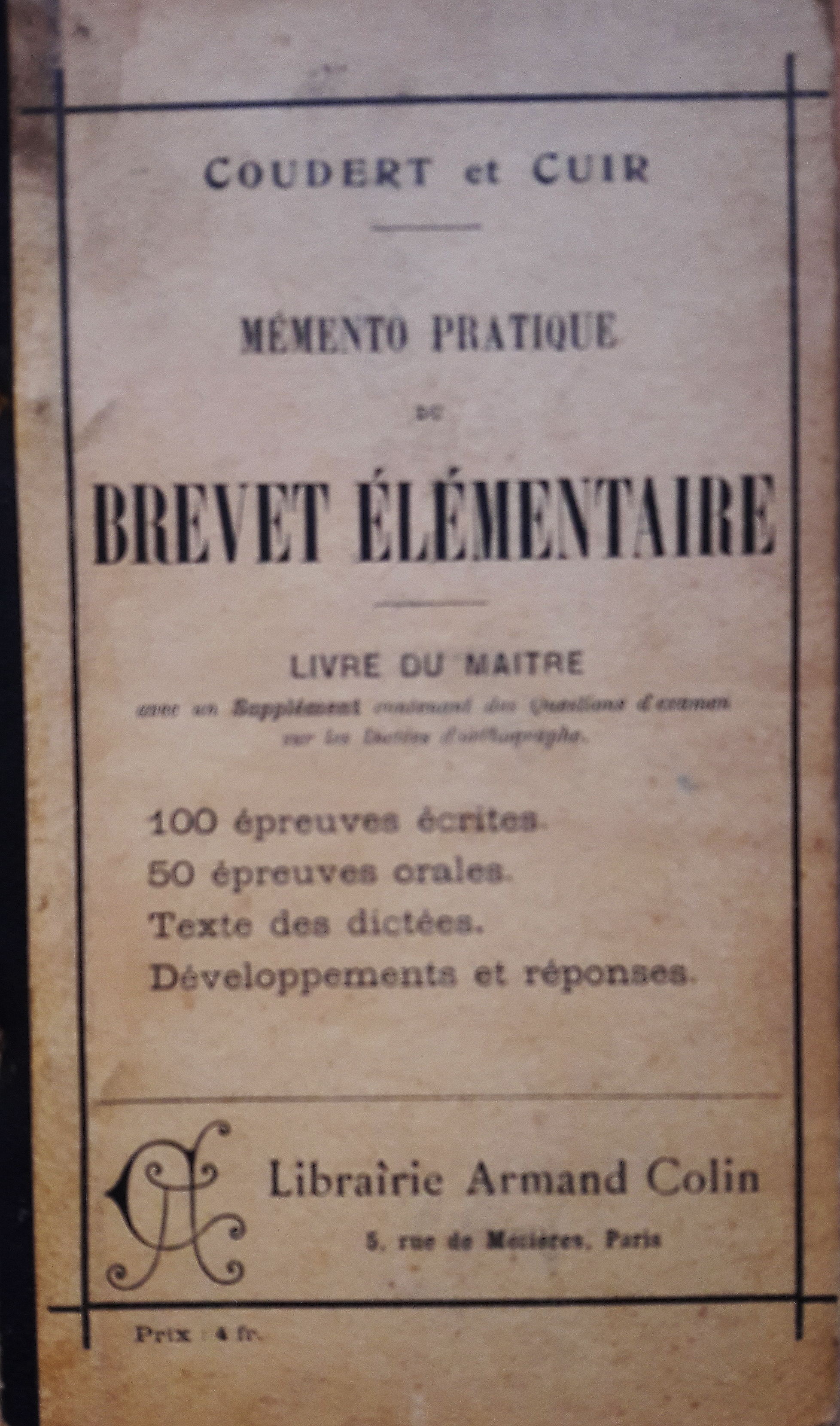 COUDERT, professeur au lycée de Saint-Etienne, officier de l'instruction publique, CUIR, inspecteur honoraire de l'enseignement primaire, membre des commissions d'examen de la Seine., “Mémento pratique du brevet élémentaire,” Maison Historique de l'Ecole dans la Manche, consulté le 28 avril 2026, https://rs-genea.com/omeka/items/show/647.