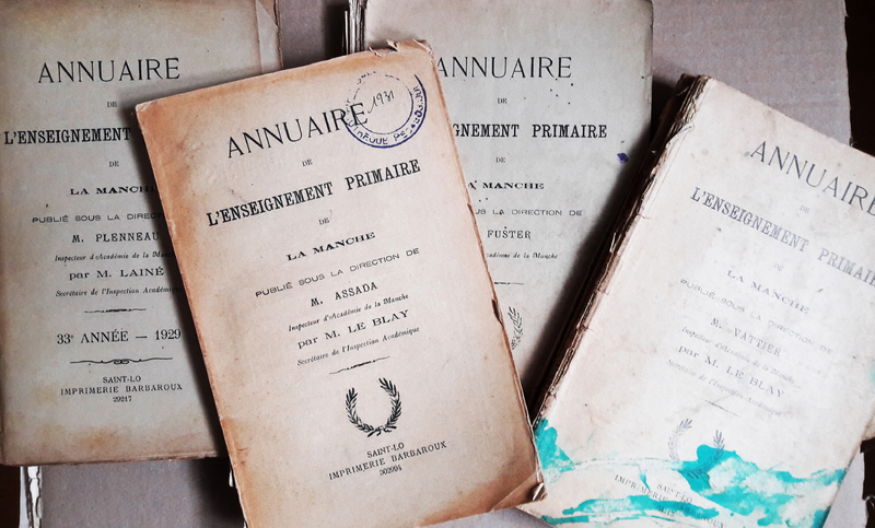 MMS FUSTER, PLENNEAU, ASSADA, VATTIER, inspecteurs d'académie de la Manche, LE BLAY, secrétaire de l'inspection académique, “Lot de huit annuaires de l'enseignement primaire de la Manche (1925, 1929, 1931, 1934, 1935, 1936, 1938, 1942),” Maison Historique de l'Ecole dans la Manche, consulté le 29 avril 2026, https://rs-genea.com/omeka/items/show/853.