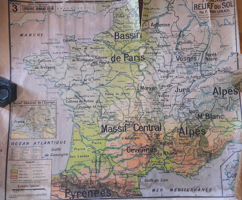 Carte Vidal Lablache, La France en relief. Parlante au recto, muette au verso. Carte n° 3.